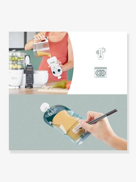 Avec ce set de 20 gourdes réutilisables de 150mL vous pouvez faire goûter à votre bébé vos purées, vos compotes ou vos yaourts ! Elles sont faciles à utiliser avec leur grande ouverture par le bas et totalement hermétiques grâce à leur système de fermeture zippée.