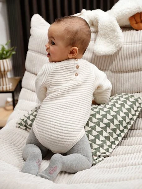 Un grand classique du dressing des nouveau-nés, la barboteuse nous revient avec une maille douillette en côte anglaise et un coloris doux. Un parfum rétro-chic qui nous plaît tant ! Un beau cadeau de naissance qui va faire craquer les jeunes parents ! Une barboteuse en tricot pour envelopper bébé de douceur.