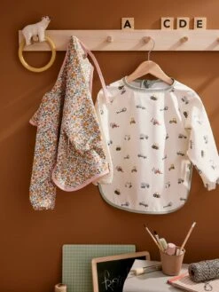 Un bavoir tablier très pratique avec ses manches longues et sa forme bien couvrante. Grâce à lui, plus de peinture ou de nourriture sur les vêtements !