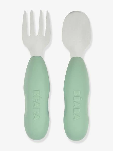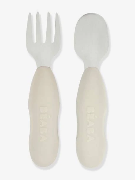 Beaba Lot De 2 Pré-couverts D’apprentissage 2e âge En Inox Et Silicone – Beige Imprimé