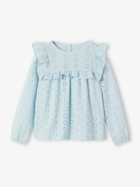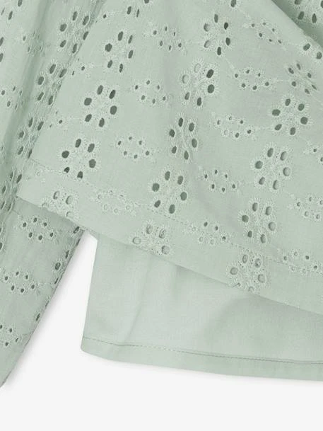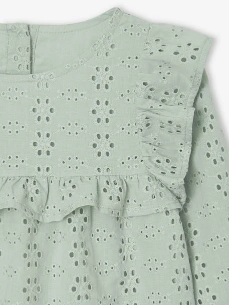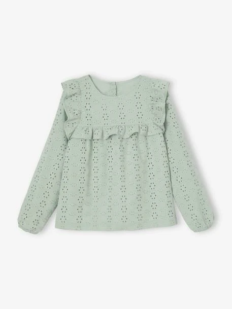 Blouse à Volants En Broderie Anglaise Fille – Vert Sauge
