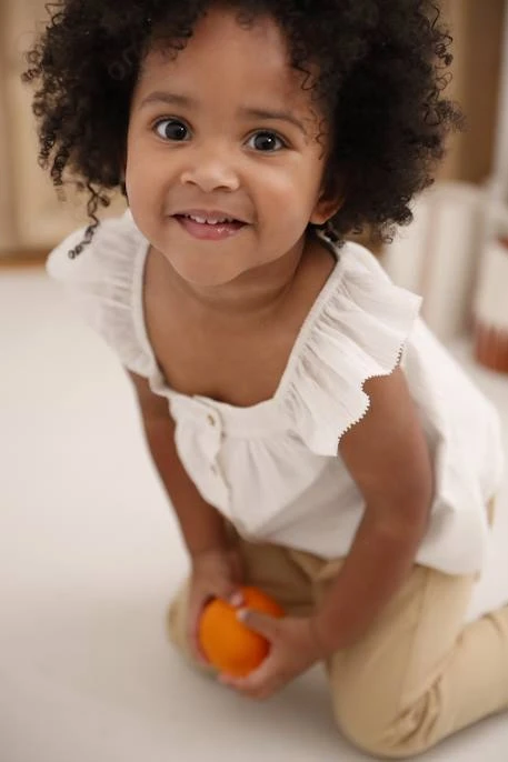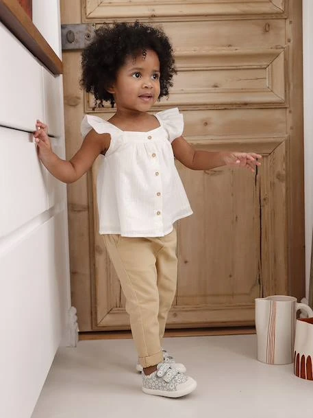Blouse rayée bébé 98% coton, 2% fibre métallisée. Doublure 100% coton.