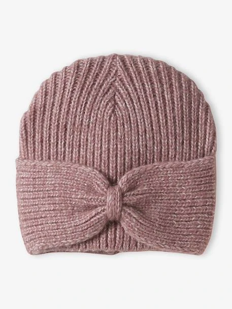 Bonnet fille en maille 64% acrylique, 36% polyester.