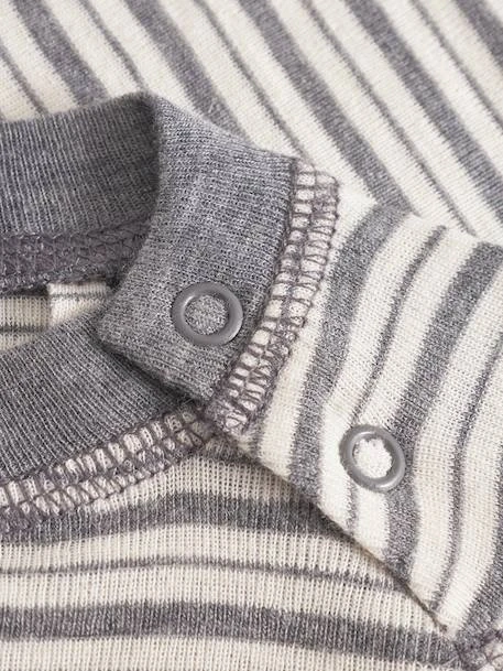 - Tee-shirt : manches raglan longues. Encolure ronde avec fermeture à bouton-pression pour faciliter l’enfilage et le retrait. Bords-côtes aux manches et à l’encolure.