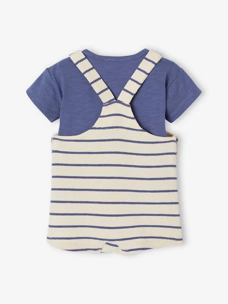 Coffret bébé 3 pièces : Tee-shirt en jersey flammé 100% coton. Salopette en maille fantaisie 100% coton. Doudou 100% coton, garnissage 100% polyester.