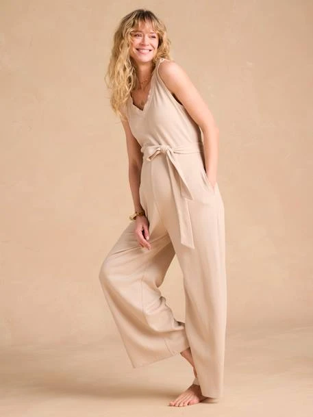 Combinaison grossesse et allaitement en maille nid d’abeille 63% polyester, 34% coton, 3% élasthanne.