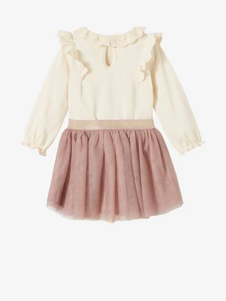 Ensemble bébé fille : T-shirt à collerette 100% coton Jupon en tulle 100% polyester, doublure 100% coton.