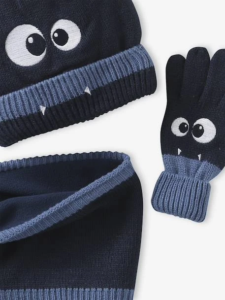 - Ensemble garçon composé d’un bonnet + un snood + une paire de moufles ou gants