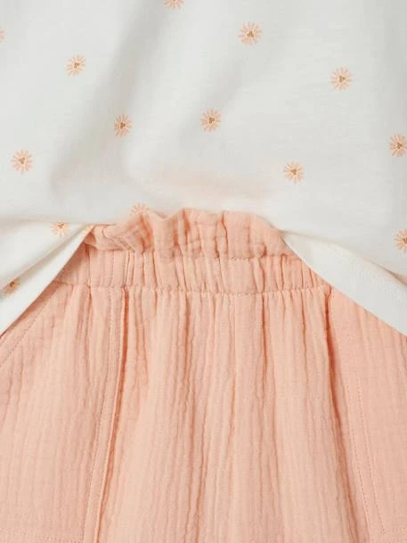 Le combo gagnant de la saison ! Cet ensemble tee-shirt et short est juste à croquer ! On adore les motifs coeurs animés de touches irisées et le short en gaze de coton dans un joli coloris melon pile dans la tendance. Un ensemble pratique et facile à twister à glisser dans la valise de vacances.
