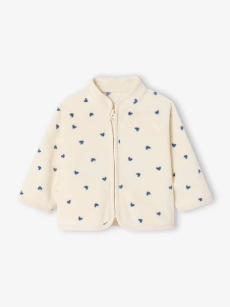 Ce gilet en polaire est parsemé de petits cœurs pour apporter chaleur et tendresse aux tenues de bébé !