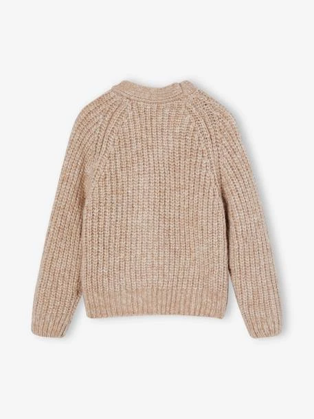Cardigan boutonné fille en maille perlée 55% acrylique, 21% polyester, 16% polyamide, 8% laine.