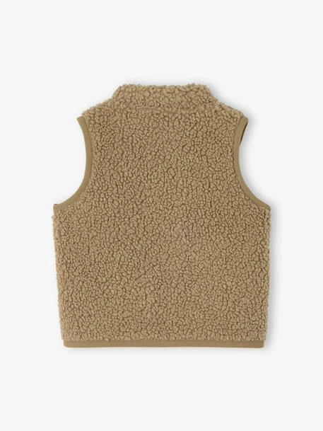 Gilet bébé en sherpa 100% polyester, doublé 58% coton, 42% polyester.