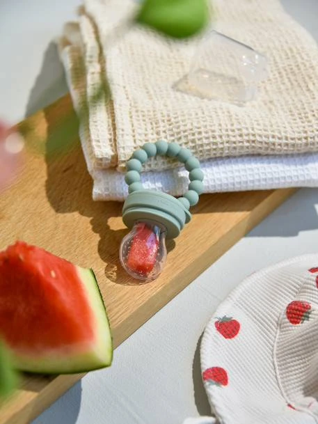 La grignoteuse Petit bout 2 en 1 sera idéale pour faire découvrir doucement de nouvelles saveurs à bébé tout en soulageant les poussées dentaires. Il suffira d’introduire des aliments dans la tétine (morceaux de fruits, de légumes, purée ou compote) et votre enfant pourra alors profiter du goût sans danger. 2-en-1, ce grignoteur pourra également servir à soulager les poussées dentaires en la mettant au congélateur. Grâce à son anneau, il sera très facilement préhensible par votre bout de chou. En silicone garanti sans BPA et de qualité alimentaire, elle sera parfaitement sûre.