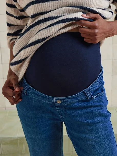 Jean droit de grossesse en denim 99% coton, 1% élasthanne