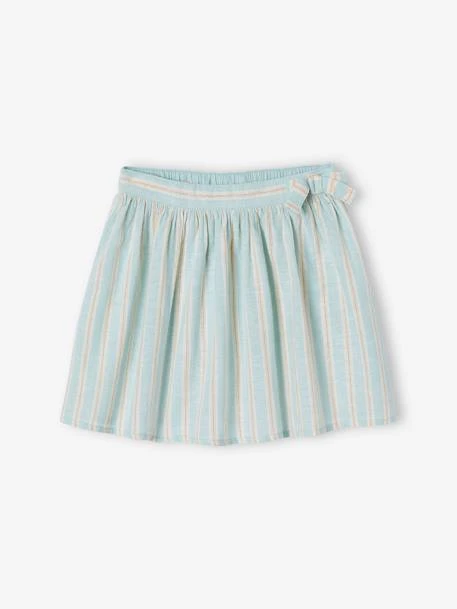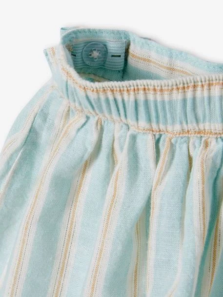 Jupe fille en tissu rayé fil brillant 69% coton, 30% lin, 1% fibre métallisée.