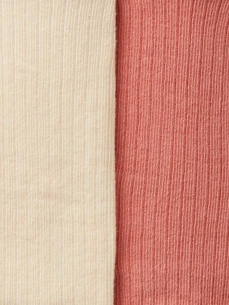 Lot de 2 paires de collants bébé fille en maille côtelée 67% coton, 29% polyamide, 3% élasthanne, 1% polyester.