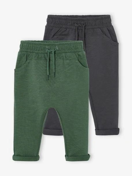 Lot de 2 pantalons bébé en molleton flammé 100% coton.