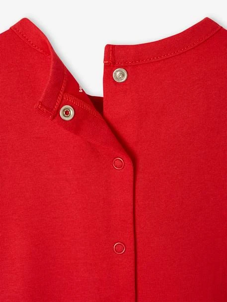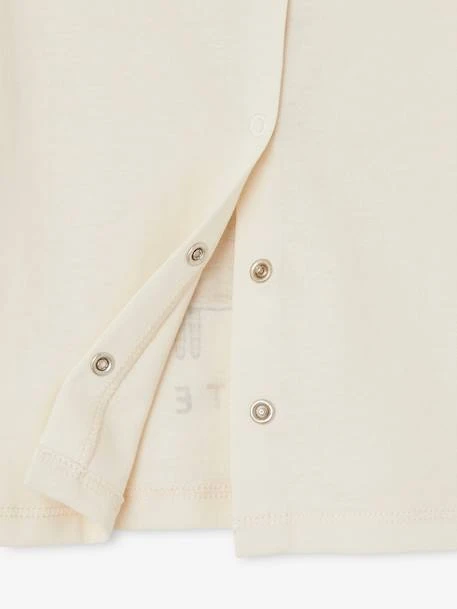 - Pour éviter d’irriter ou chatouiller la peau sensible des tout-petits, un tampon imprimé remplace l’étiquette cousue au dos