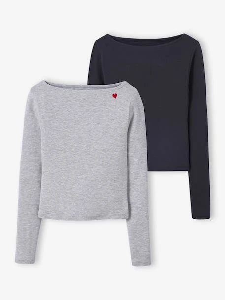 Lot de 2 T-shirts fille Jonen en maille côtelée 95% coton, 5% élasthanne.