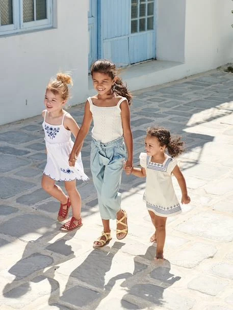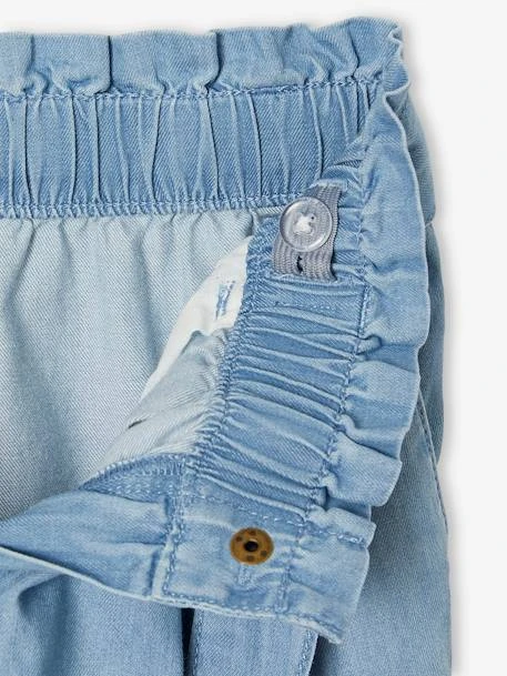 Cap sur les beaux jours ! Cette saison, le pantacourt se réinvente et prend le large pour un nouveau style (jambes larges et longueur raccourcie). Il adopte la taille haute style « paperbag », le détail mode de la saison ! En denim léger, c’est LA bonne idée pour renouveler le dressing d’été des filles.