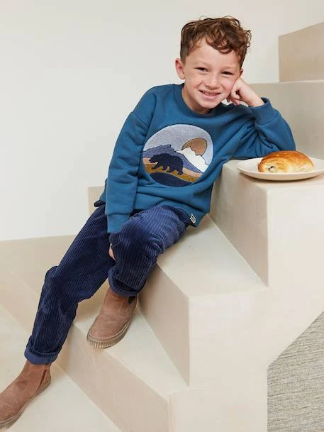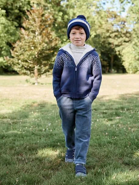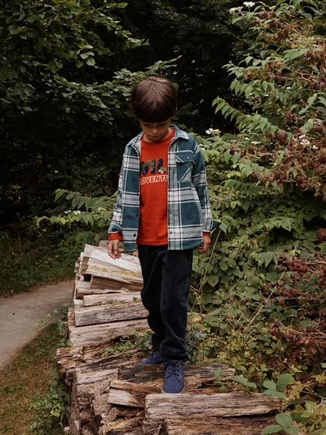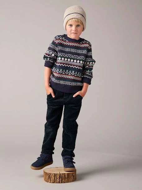 Pantalon garçon en velours côtelé 99% coton, 1% élasthanne.