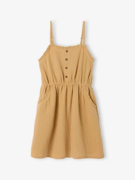 Comme une envie de vacances et de soleil… ! Des volants et un esprit bohème, cette robe à bretelles en gaze de coton renouvelle à merveille le dressing estival des filles ! Ne cherchez plus, vous avez trouvé la petite robe parfaite pour l’été !