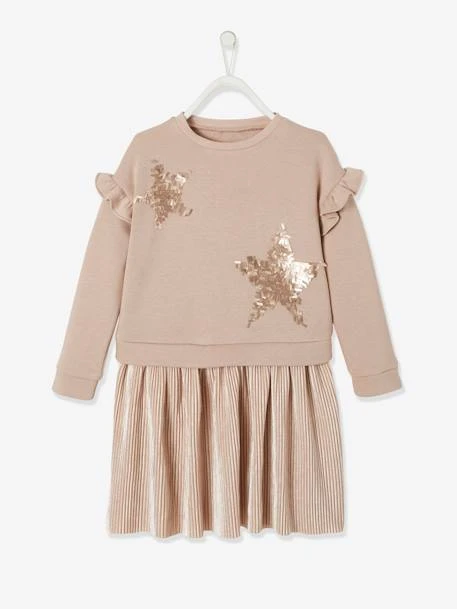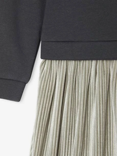 Robe fille bi-matière : Haut en molleton 69% coton, 31% polyester, tout doux à l’ intérieur.
