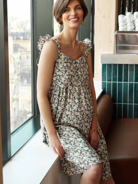 Promesse de style et de confort durant la grossesse et l’allaitement, cette robe fleurie restera une pièce essentielle de votre vestiaire estival bien après ! Détails volantés et touche irisée… cette robe multiplie les atouts pour vous mettre en valeur.