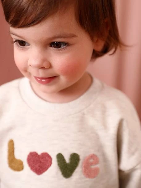 Robe bébé en molleton 80% coton, 20% polyester, pour le coloris rose. 99% coton, 1% viscose pour le beige chiné.