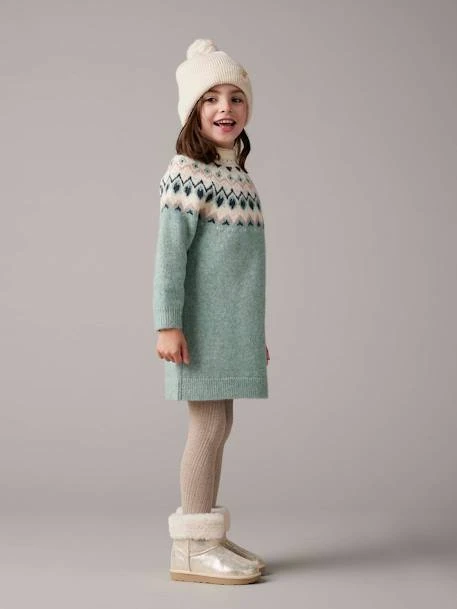 Robe en tricot fille en maille toute douce 57% acrylique, 40% polyester, 3% laine.