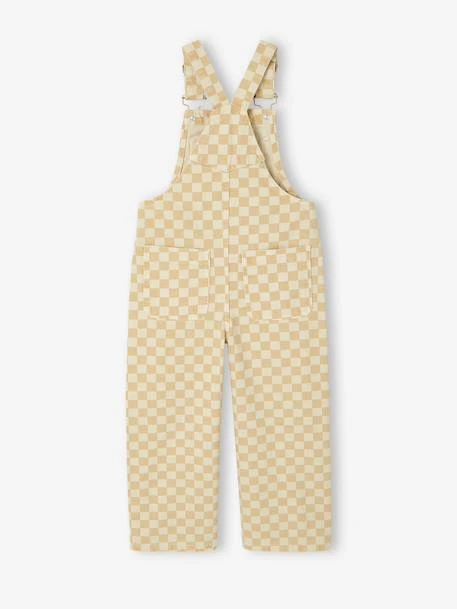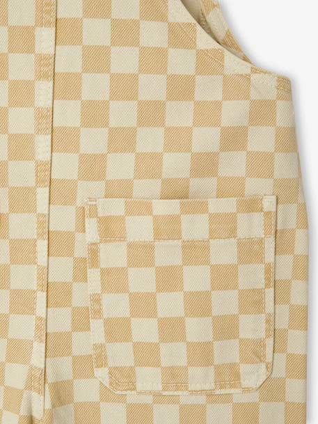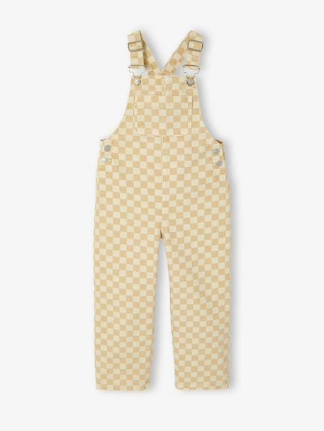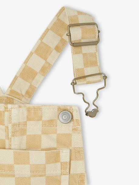 Salopette fille à carreaux en toile 100% coton, pigment dyed pour un effet unique.