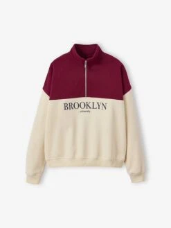 Sweat col camionneur color block fille Jonen en molleton 100% coton, tout doux à l’intérieur.