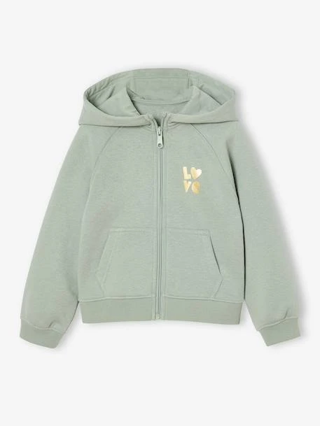 Sweat zippé fille en molleton 80% coton, 20% polyester recyclé.
