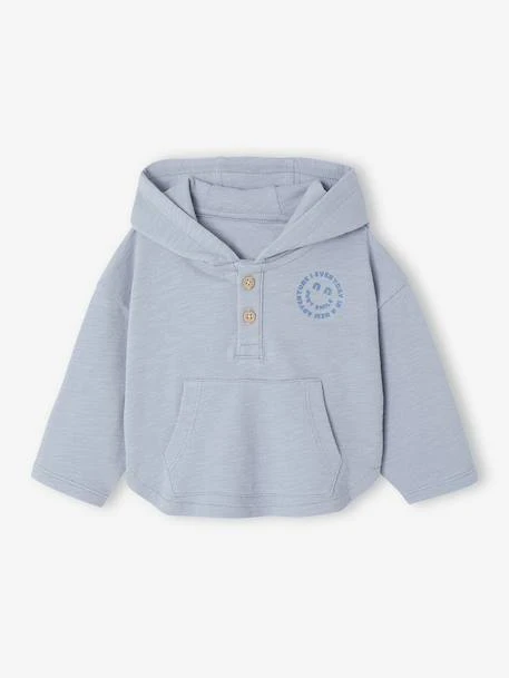 Un T-shirt à capuche pour les petits garçons qui aiment les vêtements confortables et stylés. Avec sa poche kangourou et sa patte boutonnée, il est parfait avec un jean pour les journées décontractées.