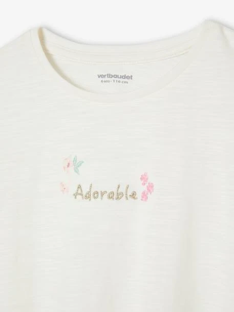 - Broderie « adorable » placée, motifs fleurs imprimés