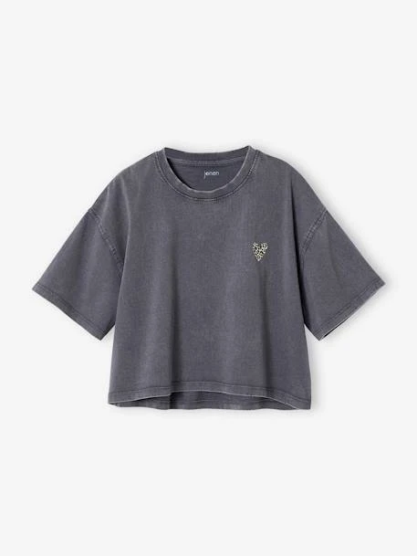 T-shirt cropped fille JONEN 100% coton, garment dye pour un effet unique.