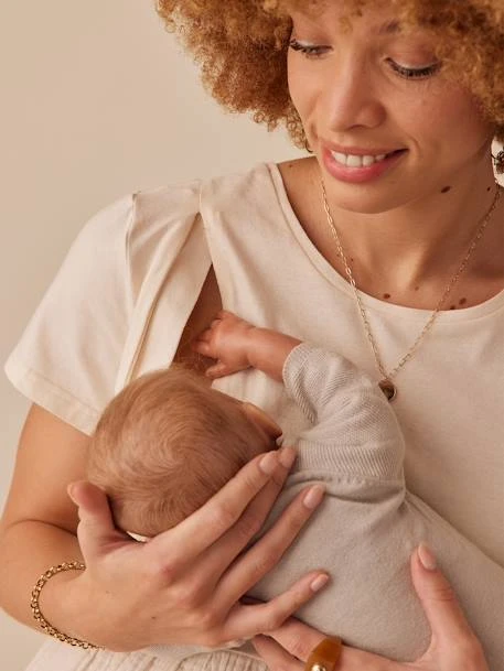 Bel effet bi-matière pour cet indispensable du confort et du style : matière chouchou, la gaze de coton pour son aspect gaufré et pour plus de féminité et une maille douce pour le bien-être. Un style impeccable et un volume plus généreux pour ce tee-shirt féminin qui vous accompagnera pendant la grossesse et même après. Ce t-shirt dévoile un système d’allaitement discret pour faciliter votre vie de jeune maman. Aussi à l’aise sur un short ou un jean, ce top fait partie de nos favoris et sera le partenaire idéal pour les beaux jours.