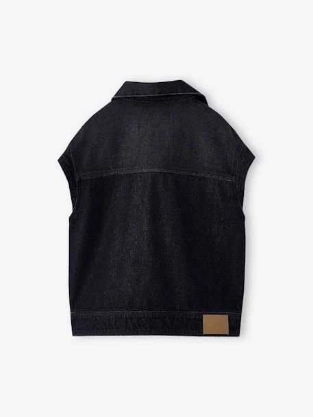 Veste en jean sans manches fille JONEN en denim 100% coton effet délavé.