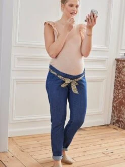 T-shirt Bi-matière De Grossesse – Beige Poudré