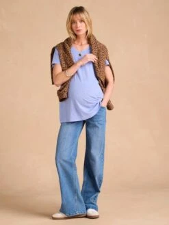 Tee-shirt Grossesse Col V Lin – Bleu Azur